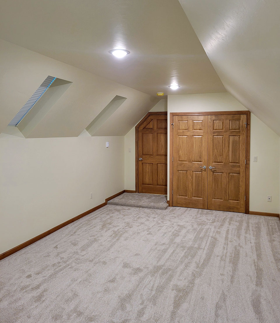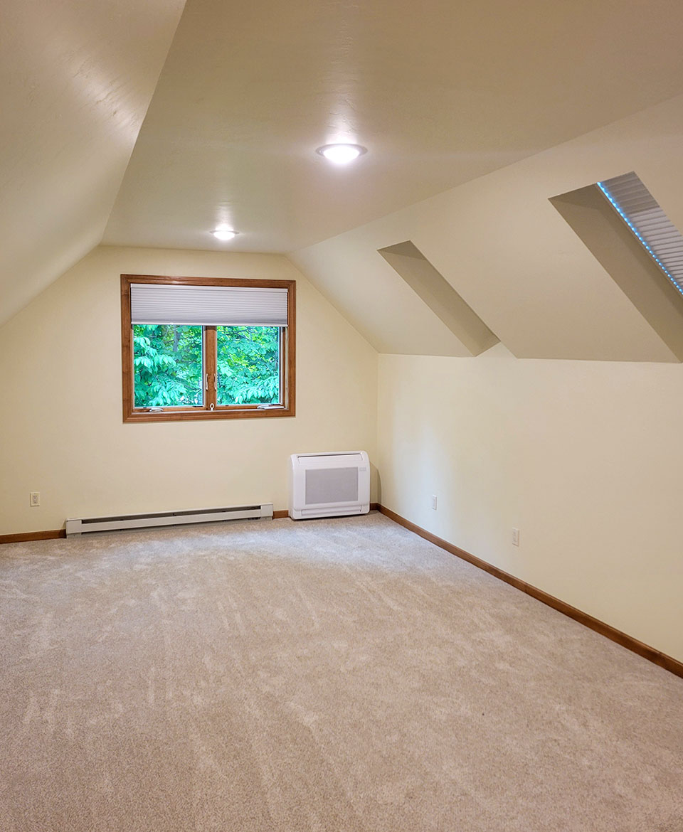 The finished bonus room is now a bright and cozy guest bedroom featuring a reach-in closet and new skylights which allow for lots of natural light and create an inviting atmosphere for guests.