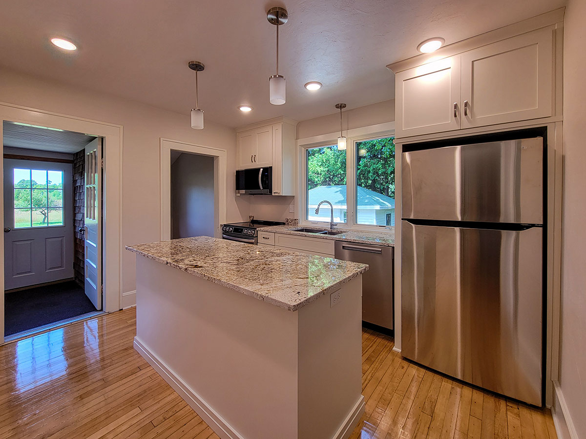 This month, we are taking a look at the kitchen in a charming cottage that, while having lots of character, had a very cumbersome layout. The only appliance in the main area of the kitchen was the sink; the stove and refrigerator were in a small adjacent room. This made the workflow inefficient, with lots of backtracking to use the sink and no prep area near the stove. The homeowners wanted to update their kitchen to have a better flow, more prep space, and more storage, all while keeping the original footprint.