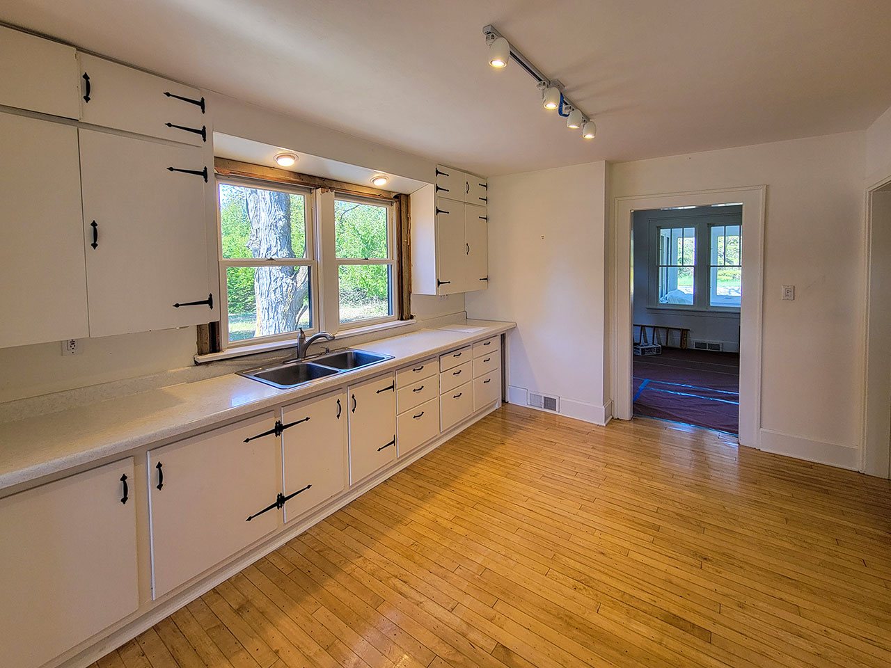 - Removed all kitchen cabinets, soffits and baseboards at cabinet area