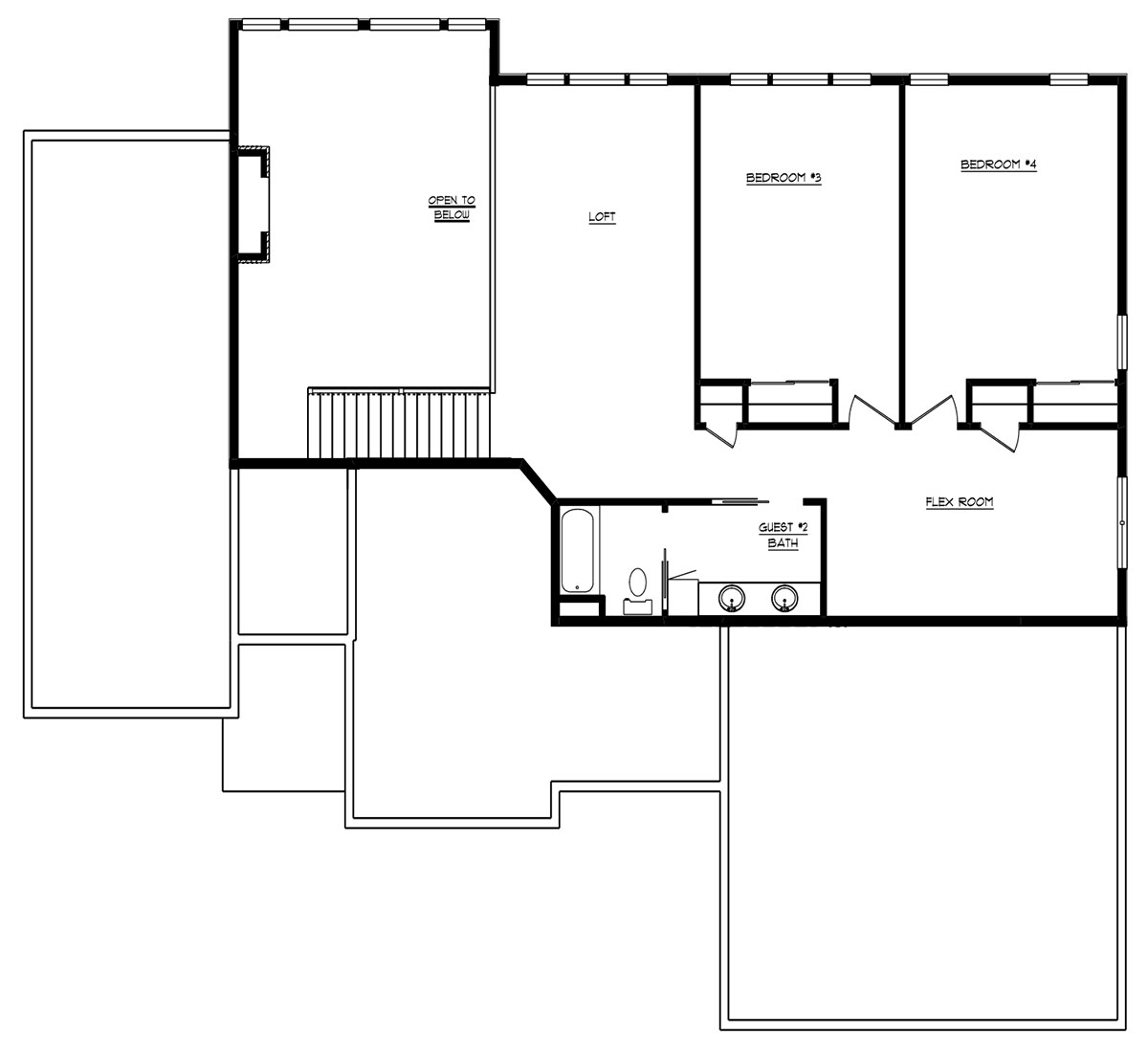 - Second floor offers two additional bedrooms, a full bathroom, loft area, and a flex room