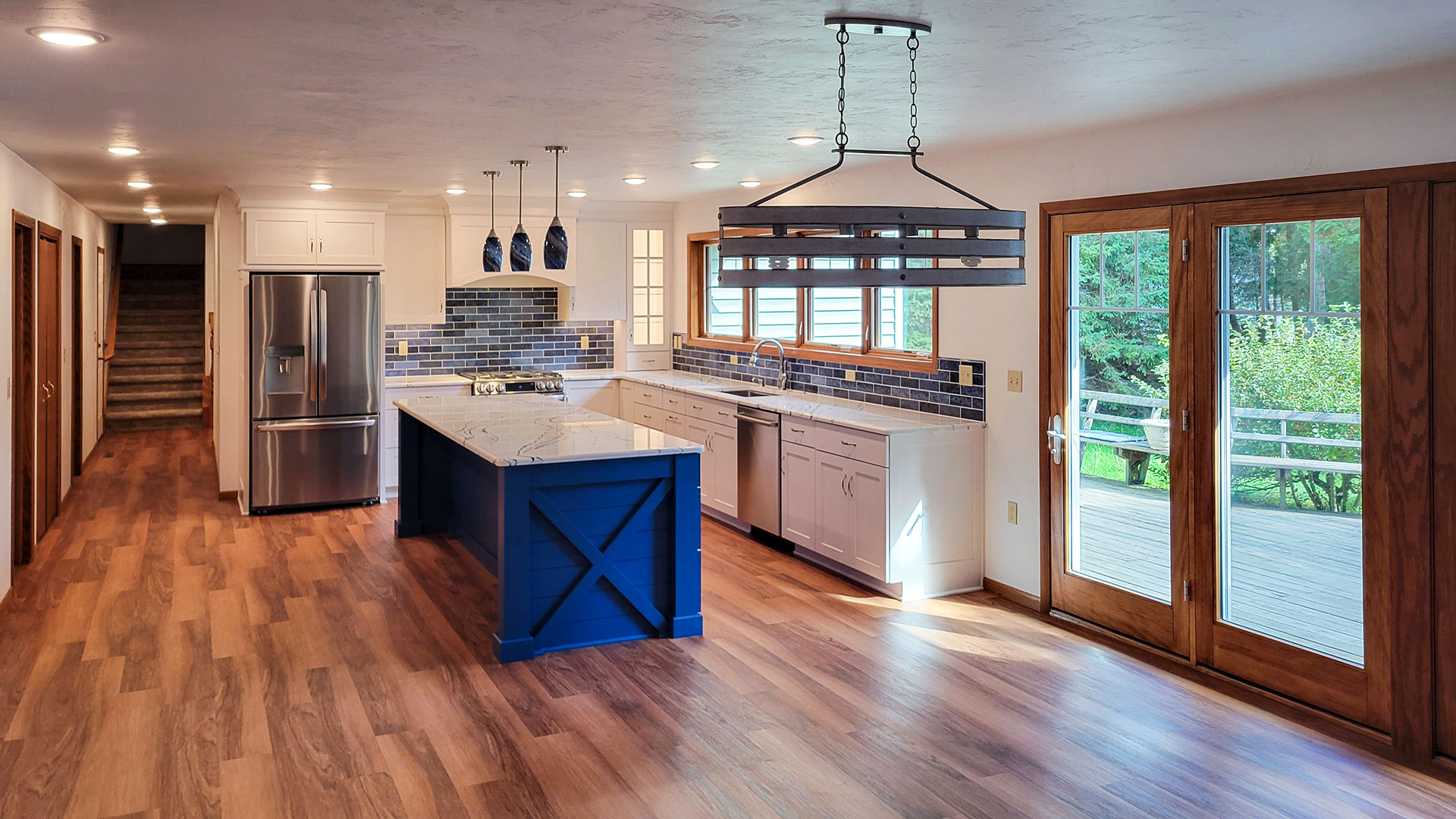 Our September Remodel of the Month features an extensive second story addition and kitchen remodel. The homeowners wanted to open up the kitchen and dining area and create a better flow and work area. They also wanted to create more space for multi-family gatherings. Sometimes, depending on lot and zoning conditions, the only way to add on to a home is up. Thus, a two-story garage with living space above was added onto the home.
