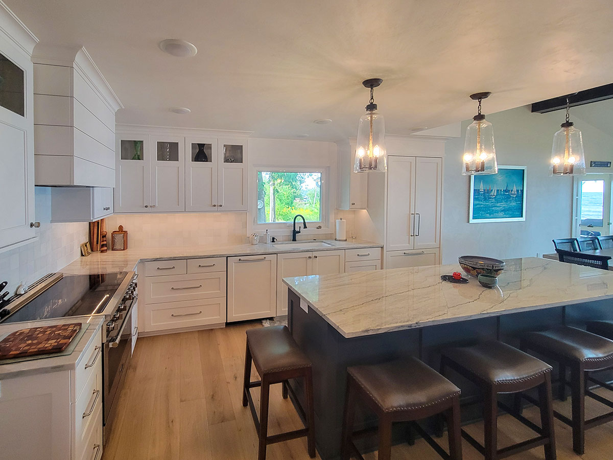 The final result is a stunning, contemporary, and refreshed home. The improvements opened up the space, created more storage for better organization, and resulted in a more relaxing and enjoyable vacation home experience for the whole family.