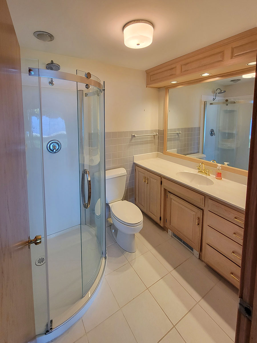 • Completely gutted all three bathrooms down to the existing wall studs.